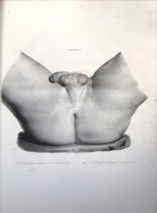 éditeur demi-toile rouille, grand titre imprimé sur le plat. Un angle décoloré. Titre, (2)- 50 pp. et 10 planches lithographiées signées N. H. Jacob imprimées par Langlumé. Rousseurs inégale-ment réparties, corps de l'ouvrage détaché, gardes et page de titre froissées. Rare édition originale posthume dans son cartonnage d'origine de ce mémoire illustré de huit planches représentant des va- riantes de lithotomie et deux planches d'instruments chirurgicaux.