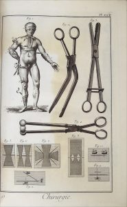 Encyclopédie. Chirurgie. xviiie s. Recueil in-folio broché, sous couverture neutre, de 4 pp. (Légende des planches), un frontispice et 36 planches gravées. Déchirure de 7 cm en marge d'un f. de texte, restauration en marge d'une planche....