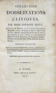 Petit (Marc-Antoine). Collection d’Observations Cli-niques. Ouvrage posthume publié par Antoine Lusterbourg et Théo-dore Jobert. Lyon, Amable Leroy, 1815. In-8, reliure de l'époque demi-veau blond, dos lisse orné de filets dorés et de...