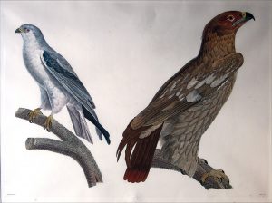 Savigny (Jules César). Aigle criard (jeune); Elainoïde blanc. Pl. 2. Chalcographie du Louvre. Épreuve rehaussée à l'aquarelle, des- sinée par Jacques Barraband et gra- vée par L. Bouquet. Cachet à sec Chalcographie du Louvre. Encadrée.