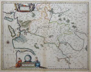 Blaeu (Willem). Xaintonge et Angoumois. v. 1650. Carte rehaussée en couleurs, 39,5 x 50,5 cm à la cuvette. Rousseurs. Bon état. Encadrée. Gaudillat p. 34.