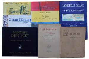 La Rochelle (Ports). Réunion de 8 volumes dont : • Musset. La Rochelle et ses Ports. Illustrations de E. Cou-neau. La Rochelle, Siret, 1890. In-4, broché. Couv. restaurée. Qq. rousseurs. • Pousson, Vert. La Rochelle. Ses Industries Ses Ports....