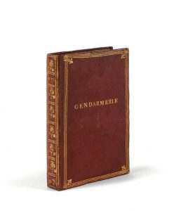 Gendarmerie - Almanach et état de la Gendarmerie pour l’année 1775. Nancy, Leseure, s.d. (1775), in-16, maroquin rouge, inscription dorée sur le 1er plat « Gendarmerie », triple filets encadr. les plats avec fleurs de lys aux angles, dos lisse,