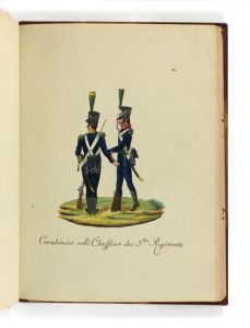 Album Du Bourgeois De Lunebourg. S.l., s.d., in-8, demi-rel. à coins chag. fauve, titre en long. Avec 20 planches en couleurs. Premier Empire : Espagnols, Français et Hollandais. Quelques mouillures éparses.