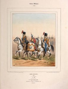 Dero-Becker (chez). Armée française. Ancien Régime - Révolution - Premier Empire - Restauration - Louis-Philippe. S.l., s.d., in-4, demi-rel. à coins mar. bleu marine à grains long, dos à nerfs, richement orné, pièce de titre rouge, tête dor.