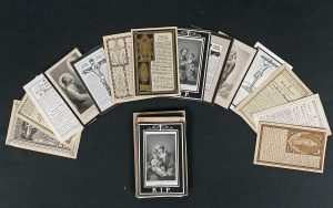 +/- 530 images mortuaires sauf qqs souvenirs de 1re communion, images pieuses et certificats d'admission dans une confrérie religieuse, 19e s.