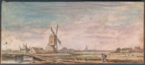 [Attribué à AKEN, Jan van (1614-1661)].- Paire de paysages animés hollandais, l'un avec moulin.