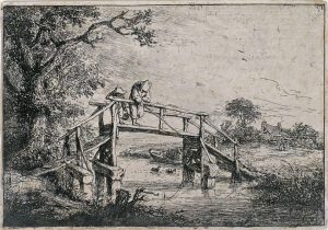 OSTADE, Adriaen van (1610-1685).- Pêcheurs sur un pont.