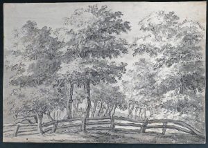 DESSIN ORIGINAL, pierre noire, pinceau et lavis à l'encre grise, papier vergé non filigrané, 18,5 x 26,5 cm, fixé par le bord sup. sous passe-partout.