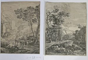 Eaux-fortes, formats divers, papier vergé filigrané ou non (pet. défauts). (1-2). BOTH, Jan Dirksz. (1615-1652).- 2 paysages vallonnés boisés avec voyageurs.-- (3). DOLENDO, Zacharias (1561-1601).- La solitude de Scipio [d'après Abraham BLOEMAERT (1566-1651)].-- (4-7). GHEYN, Jacob de (1565-1629).- 3 vertus (Charité, Foi et Prudence) & Vierge à l'Enfant en médaillon [d'après Bloemaert].-- (8-9). PASSE, Crispin de (1564-1637).- Europa et Les âges de la vie (30 ans).