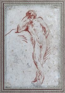 DESSIN ORIGINAL, crayon sanguine, papier vergé non filigrané, 17,5 x 11,5 cm, monté sous fenêtre, sous passe-partout.