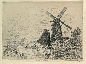 JONGKIND, Johan-Barthold (1819-1891).- " Moulins en Hollande".