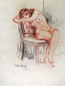 LOBEL-RICHE, Alméry (1880-1950).- Nu féminin assis sur une chaise.