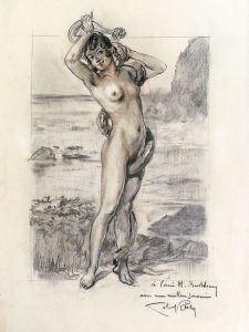 LOBEL-RICHE, Alméry (1880-1950).- Nu féminin avec serpent.