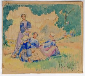 PÉGOT-OGIER, Jean-Bertrand (1877-1915).- Jeunes bretonnes assises dans un pré.