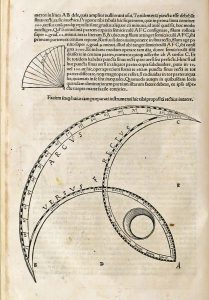 Édition originale de la traduction illustrée d'1 gravure sur le titre (figurant Apian et ben Aphla ?), d'armoiries à pleine page, d'in texto et avec 9 tables trigonométriques. 1 (sur 2) parties en 1 vol., demi-parchemin blanc moderne.