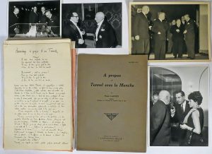 C. 300 doc. : photographies en noir, lettres mss, doc. div. (qqs-uns en double). Pierre Lacoste, ingénieur-constructeur, s'occupa avec son père Edmond de l'entreprise familiale. Il était par ailleurs juge au tribunal de commerce, chargé de mission économique (e.a. en Pologne), Commissaire général de la Lettonie lors de l'exposition universelle de '35 et chroniqueur économique au Courrier de l'Escaut. Le lot contient majoritairement des photos et cartes postales d'ordre privé (Pierre écolier, son épouse Marie-Louise Descamps, voyage à la montagne avec ses enfants (?), 1 photo sur le front...), d'ordres mondain (dîners : Congrès des ingénieurs, banquet en l'honneur de Paul Parent, Chambre du commerce...) et professionnel (réunion ICAM à Paris, avec J. Pholien, avec Ad. Max en visite à Varsovie et à l'inauguration du pavillon finlandais lors de l'exposition de '35...). Avec une étude ms. de 1905 sur l'éclairage à la campagne, 1 l.a.s. de Marie Janson, fille de Paul-Émile, 1 lettre dactyl. signée par P.H. Spaak, des photos dédicacées (par Max, Janson, R. Vaxelaire, le président de la Finlande Peter Evind Svinhufud), médaille d'assistance aux évacués du Nord de la France, article sur le tunnel sous la Manche qu'il écrivit avec 2 jeux d'épreuves, etc.