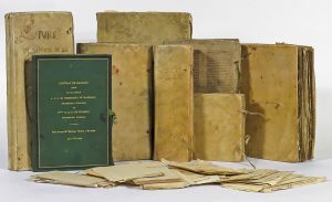 Manuscrits & Archives : Bible du 15e s., lettres patentes, fonds d’archives divers (dont seigneurerie de Steenhault, famille de Henry Lacoste), manuel de géométrie sphérique et d’astronomie nautique, jeux des enfants de la Reine Hortense, manuscrits turcs et arabes…– Voyages : Afrique, Espagne, Suède, Bibliothèque portative des voyages (42 vol. : Bruce, Cook, Macarteney…); Sciences : Botanique (Plantarum seu Stirpium, 1576, Dodoens, fleurs du Brésil, Sweerts), histoire naturelle (Buffon, Réaumur), médecine, astronomie, pharmacologie, ingénierie; Religion (bibles, judaïca); Éditions des 16e (religion dont seul ex. connu d’un bréviaire cistercien, patrologie); Hippologie (Newcastle), escrime, histoire, art, bibles (théologie, dévotion…), Tauromachie, filigranes, affiche de la condamnation d’Edith Cavell, auteurs latin; Belgicana : livres, cartes & archives dont plusieurs manuscrits de droit écrits par le comte de Wynants