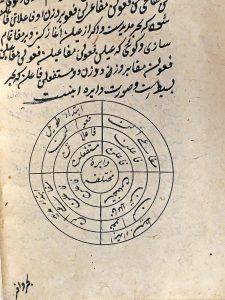 [Fin 19e - 1re moitié 20e s.]. In-8° : [436] ff. (gal. de vers marg., qqs pet. déchirures aux bords des ff.). Rel. orientale de l'époque : plein cuir, plats ornés de filets dorés croisés au centre et de fleurons floraux à froid (plis, rel. baillante, qqs taches). Manuel pédagogique en turc ottoman et en farsi, orné de 7 sortes de clés pédagogiques présentées sous forme de cercles divisés ou de cercles rayonnants destinés à faciliter la mémorisation des règles de versification. Manuscrit non daté, complet (cfr répétition de la mention "achevé" ou "entièrement achevé" par le scribe). Avec une note en néerl. sur la garde : "N° 35 dit boeck noemt men Diwaan Resfala, vervattende een nadrukkelijke aantoning van 't geschil tusschen de arabiese en Perziaanse woorden".
