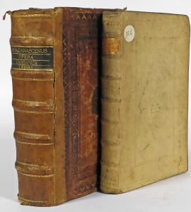 Sanctus GREGORIUS Nyssenus.- Opera quae adipisci licuit omnia [...]. (Per Nic. Episcopium Juniorem, mense Februario), 1562, in-f° plein vélin. Édit. orig. de la trad. des traités théologiques du Cappadocien Grégoire de Nyssée; bon ex. orné d'initiales.-- Sanctus JOANNES Damascenus; Sanctus JOANNES Cassianus.- Opera omnia [...]. (Ex officina Henricpetrina, 1575 mense septembri), in-f°, plein veau estampé à froid (pet. défauts, mouill. marg. dans la 1re moitié, dos refait au 19e s., coins restaurés). Édit. orig. juxtalinéaire (grec-latin) avec les commentaires de Jean Cassien; ill. de lettrines et marques de l'imprimeur; div. mentions mss.