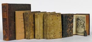 In-12° ou in-4°, rel. div. de l'ép. (us., pet. défauts). 3 éd. en latin imprimées à Paris (Cramoisy, 1616) et Anvers (Plantin Moretus : 1617 et 1626), 1 en français (Brux., Foppens, 1689; ex-libris J.B. Doutret), 1 en latin-grec (Augsbourg, Nicolas, 1615), 1 en néerl. (Malines, Dessain, 1926) et 1 éd. des oeuvres complètes (Anvers, Nutius, 1606; rel. restaurée).