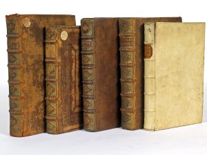 In-f°, plein veau de l'ép. sauf 1 en plein vélin (rel. us., certaines fort frottées, qqs coiffes abîmées...). CONINCK, E. de.- De moralitate, natura, et effectibus actuum supernaturalium in genere. Nutius, 1623. Titre gravé et lettrines.-- MORINO, J.- Commentarius historicus de disciplina in administratione sacramenti poenitentiae. Metelen, 1682.-- [Idem].- Commentarius de sacris ecclesiae ordinatibus, secundum antiquos et recentiores Latinos, Graecos, Syros et Babylonios. Desbordes, 1695.-- NEESEN, L.- Universa theologia in tomos duos divisa ad mentem SS. Augustini et Thomae Exposita. Muller, 1707.-- BONA, J.- Opera omnia. Verdussen, 1723. Vignette armoriée de Gérard Rubens, abbé de l'abbaye cistercienne de Saint Bernard sur l'Escaut.