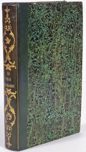 Paris, H. Delloye, Victor Lecou, 1838. Gr. in-8°. Rel. de l'époque : demi-veau vert, plats de papier marbré vert, dos lisse orné en long de grands fleurons romantiques dorés (dos à peine passé, très lég. us. aux coupes et coins). PREMIER TIRAGE des 100 vignettes in texto gravées sur acier par Gavarni, Janet-Lange, Maeckl, etc., et de quelques jeux typographiques (pp. 46-47). Premier tirage du texte, vignette de titre avec squelette, portraits aux pp.149 et 287. Ex. sans couv. cons.
