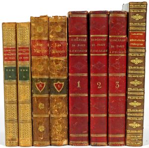 JOINT : (1). CHATEAUBRIAND, Fr.-R. de.- Les Martyrs, ou Le triomphe de la religion chrétienne. P., Le Normant, 1809, 2 vol. pleine basane marbrée (lég. jaunis). Édit. orig.-- (2). LAMARTINE, Alph. de.- Méditations poétiques [- Nouvelles méditations poétiques], 3e éd. P., Librairie grecque-latine-allemande [- Urbain Canel, Audin], 1820 [- 1823], 2 t. en 1 vol. demi-veau noir à grains longs, couv. cons. (lég. bruni, rouss., dos passé). Portrait, frontispice et lettre à Ch. Nodier en fac-similé.-- (3). [Idem].- Histoire de la Révolution de 1848. Brux., Meline, Cans; Livourne, même maison; Leipzig, Meline, 1849, 2 vol. demi-veau marbré à coins.