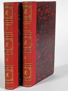 Paris, Michel Hetzel; Pagnerre, 1856. 2 vol. in-8° (ex. lég. bruni, pet. piqûres, qqs pet. rouss. sur le titre du t. II). Rel. de l'époque : demi-chagrin rouge, dos à nerfs et caissons fleuronnés dorés (coins et coupes frottés). "ÉDITION ORIGINALE" (française). Les bibliographes se disputent sur l'antériorité d'une édition par rapport à une autre, les libraires favorisant souvent l'une ou l'autre version pour valoriser leur exemplaire. Pour Carteret et Vicaire, l'originale serait celle de Michel Lévy à Paris mais pour Talvart, ce serait l'édition bruxelloise car composée la première et ayant servi à établir l'édition parisienne sur les bonnes feuilles de l'édition belge, Hugo souhaitant une édition simultanée selon de Sadeler.