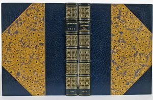 Paris, Calmann Lévy, 1900, (1908). 2 vol. in-12°. Reliés par Dubois d'Enghien-Dooms : demi-maroquin bleu foncé à coins, double filet doré cernant les plats de papier marbré, dos à nerfs et caissons fleuronnés dorés "à la grotesque", têtes dorées, couv. et dos cons. ÉDITION ORIGINALE pour "Clio"; en GRANDE PARTIE ORIGINALE pour "Les Contes de Jacques Tournebroche". Le premier ouvrage est illustré de 13 compositions en couleurs (plat sup. de la couv., 6 hors-texte et 6 bandeaux), le second de 46 compositions en couleurs (vignette de couv. reprise sur le titre, 9 cadres de titres, 9 bandeaux et 9 lettrines, 9 hors-texte et 9 culs-de-lampe). Ex. du tirage courant, reliés de façon identique.