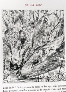 Paris, Flammarion, 1951. 2 vol. in-f° (pet. déchirure marg. pp. 81-82). En ff., sous couv. illustrées sur le plat sup. Sous chemises et étuis d'éd. Belle édition illustrée avec gourmandise de plus de 160 grandes pointes sèches en noir dont 2 pleines pages et 1 sur chaque plat sup. des couvertures. Recueil de méditations sur les sens, le goût, la gastronomie, l'appétit, les aliments, la friture, la soif, les boissons, les gourmands, les obèses, les maigres, le plaisir de la table, la digestion, le repos, le sommeil, le rêve, l'influence de la diète sur le repos, le jeûne... Avec une histoire philosophique de la cuisine et des restaurateurs. Tirage à 245 ex. sur pur fil du Marais, un des 200 du tirage courant (n° 111).
