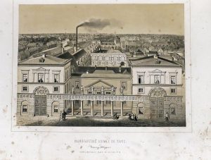 Bruxelles, Jules Géruzet, [c. 1850]. 2 vol. in-f°; 181 (sur 200) h.-t. (dont les pl. 50 et 72-73 en double; pl. déreliées, nombreuses rouss. le plus souvent marginales, larges mouill. marg., bords effrangés, qqs pl. lég. brunies, rares déch. restaurées, grande déch. sans manque à 1 pl...). Rel. de l'époque : demi-chagrin prune ou noir à coins, plats de papier marbré, dos à nerfs sertis de filets dorés (rel. usée et frottée avec manques). Ouvrage indispensable pour l'étude de la révolution industrielle de notre pays, illustré de 181 lithographies sur fond teinté ou en couleurs majoritairement par Adrien Canelle, Edwin Toovey et Guillaume Van der Hecht tirées sur les presses de Simonau et Toovey : charbonnages (Lodelinsart, Mariemont, Bois-du-Luc...), fabriques de tissus (Seny et Leclerc à Cureghem, Ferdinand Lousberges à Gand...), hauts-fourneaux (Soc. anonyme de la Providence à Marchienne-au-Pont, Cockerill...), entreprises (manufacture de glaces Ste-Marie d'Oignies à Aiseau, fabriques de pianos Berden à Brux, de sucre de betterave à Waterloo, établissement géogr. Vandermaelen...), etc. Les bibliographies mentionnent 200 planches mais notre ex. contient une lithographie "n° 219" figurant les fours à coke d'Alexandre François à Marcinelle.