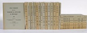 Bruxelles, Tradition et vie, 1960 [- 1970]. 22 vol. in-4° carré (la plupart des vol. ou qqs pp. dans les autres lég. brunis, qqs pp. non coupées). Brochés (qqs dos lég. passés). COLLECTION COMPLÈTE de la 1re série de cet ouvrage de référence publié sous la direction de José Anne de Molina, Oscar Coomans de Brachène, Xavier de Ghellinck Vaernewyck et Georges de Hemptinne. Illustré d'armoiries in texto et de planches figurant des reproductions de portraits et de châteaux.