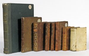 Varia : 7 ouvr. d'histoire, droit, commerce, politique, numismatique, en 8 vol., formats et rel. div. de l'ép. (us., défauts, rouss., marques d'app.).