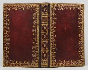 In-12, maroquin rouge, large dentelle dorée sur les plats, dos lisse orné, tranches dorées sur marbrure (Reliure de l'époque).