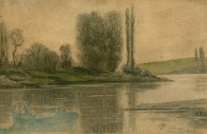 Dim. cadre : 32 x 42 cm ; sujet :17,5 x 26 cm. Peintre et graveur dont l'essentiel de l'oeuvre est voué au paysage, Pierre Abattucci (Bruxelles, 1871-1942) est un adepte d'un luminisme teinté de réalisme. Il peint dans un esprit symboliste, des vues crépusculaires noyées de brume et teintées de mélancolie.