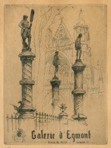 PEISER (Kurt). "Galerie d'Egmont, place du petit Sablon". Eau-forte en noir,