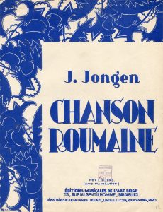 Poème de Hélène Vacaresco. Musique de Jos. Jongen. Brux., L'Art belge, (ca 1925), 8 p., 35 x 27 cm, cachet édit. sur la couv. (froissements épars). Zincographie tirée en bleu (Schwilden, 16 B).