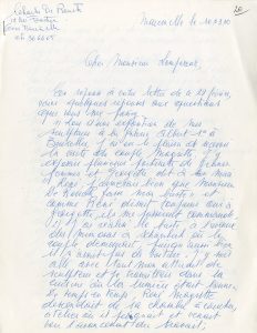(2 pages 4°). "[...] Lors d'une exposition de mes sculptures à la Galerie Albert Ier à Bruxelles, j'ai eu le plaisir de recevoir la visite du couple Magritte [...] Georgette dit à son mari 'René, j'aimerais bien que Monsieur De Rouck fasse mon buste [...] J'ai réalisé le buste à l'avenue des Mimosas à Schaerbeek où le couple demeurait [...] je travaillais dans la cuisine où la lumière était bonne. De temps en temps, René Magritte descendait de sa chambre à coucher, atelier où il peignait et venait voir l'avancement du travail. De même qu'il m'invitait à monter à l'étage pour me commenter son propre travail. Nous travaill[i]ons le matin, le midi je prenais le repas avec eux et l'après-midi, nous allions, en compagnie du caniche, prendre le thé dans un café où ils étaient des habitués, place Meizer [sic] [...] La réception du buste de Georgette eut lieu après le retour d'Israël [1965] où Magritte avait été invité [...] le buste de Georgette était placé sur le piano quart queue qui trônait au milieu de salon [...]". Le buste, une terre-cuite, fut acheté par un collectionneur anversois en 1987 lors d'une vente publique au Palais des Beaux-Arts de Bruxelles. Charles De Rouck (Châtelineau, 1930), sculpteur, céramiste. Formation à l'Académie de Bruxelles chez Jacques Marin et Marnix d'Haveloose, à l'Académie de Charleroi chez A. Darville. Auteur de figures et de portraits. Style légèrement épuré. Prix Godecharle en 1951. Membre du Groupe «Sextant». Il est devenu professeur, puis directeur de l'Académie de Charleroi ainsi qu'inspecteur de l'enseignement des arts plastiques. Oeuvres dans les Musées d'Anvers et de Charleroi.