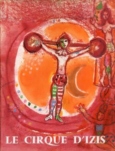 CHAGALL.- PREVERT (Jacques).Le Cirque d'Izis. 4 compositions en coul. de Marc Chagall et nombr. photos n/b d'Izis Bidermanas. Monaco, André Sauret, 1965,