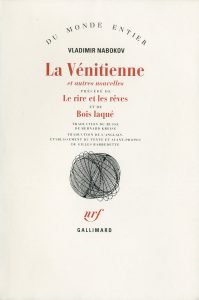 NABOKOV (Vladimir). La Vénitienne et autres nouvelles, précédé de Le rire et les rêves et de Bois laqué. Trad. du russe de B. Kreise. Trad. de l'anglais, établissement du texte et avant-propos de G. Barbedette. P., Gallimard, "Du Monde...