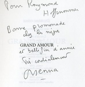 8°, br., non coupé. Edit. orig. 1/30 ex. num. sur vergé Ingres, seul grand papier. Envoi : "Pour Raymond Hoffsummer. Bonne promenade chez les nègres et belle fin d'année. Très cordialement. Orsenna".