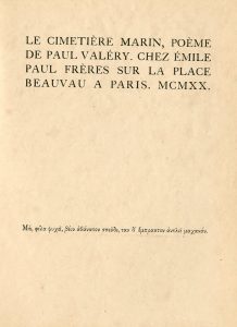 VALERY (Paul). Le Cimetière marin. Poème. P., Emile-Paul Frères, 1920,