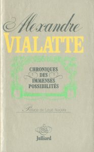 VIALATTE (Alexandre). Chroniques des immenses possibilités. Préface de Louis Nacera. P., Julliard, 1993,
