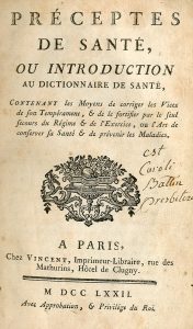 de conserver sa santé et de prévenir les maladies. Paris, Vincent, 1772,