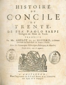 SARPI (Paolo). Histoire du Concile de Trente, traduite par Mr. Amelot de la Houssaie. Avec des remarques historiques, politiques, et morales. Seconde édition, revûe et augmenté [sic]. Amsterdam, G.P. et L. Blaeu, 1686,