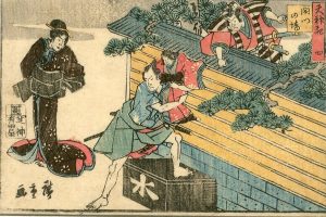 Estampe titrée "Tenjin-ki" (Tenjin est le dieu du ciel). Format kuban (vers 1840-1850).
