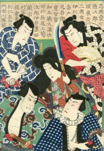 TOYOKUNI III (1786-1865). Présentation d'acteurs kabuki dans leurs meilleurs rôles au début de la saison théâtrale.