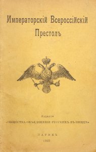 Le trône impérial de Russie. Paris, 1922. Императорский Всероссийский престол : Наследование престола по основ. гос. законам : Справка по некоторым...
