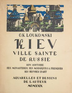 [UCRAINICA] LOUKOMSKI (G.K.). Kiev, ville sainte de Russie. Son histoire, ses monastères, ses mosaïques & fresques, ses oeuvres d’art. Aquarelles et dessins de l’auteur. Paris, J. Danguin [1929]. ЛУКОМСКИЙ,...